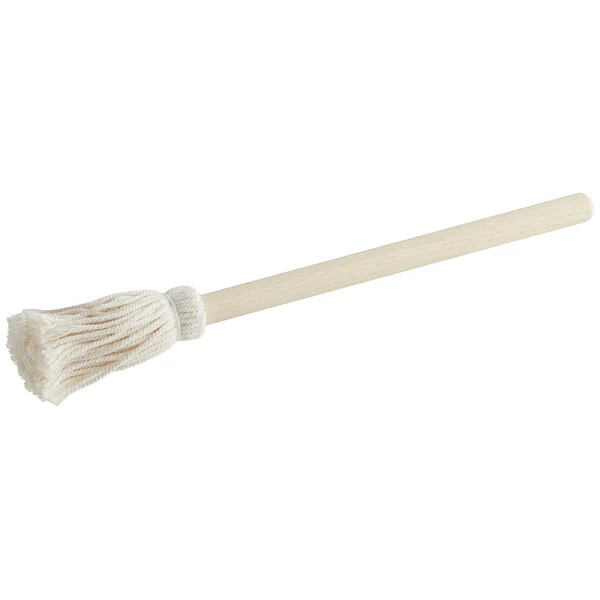 Durable cotton mop brush ideal for applying sauces, marinades, and glazes. Features a 12-inch handle for safe, easy basting on the grill or smoker. Perfect for BBQs, restaurants, and catering.