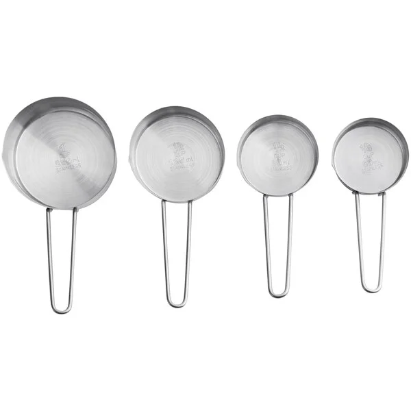 Stainless Steel Measuring Cup Set with Wire Handles – Durable, corrosion-resistant measuring cups for accurate ingredient portioning. Features sturdy wire handles for easy grip and storage. Perfect for bakeries, kitchens, and food prep areas.